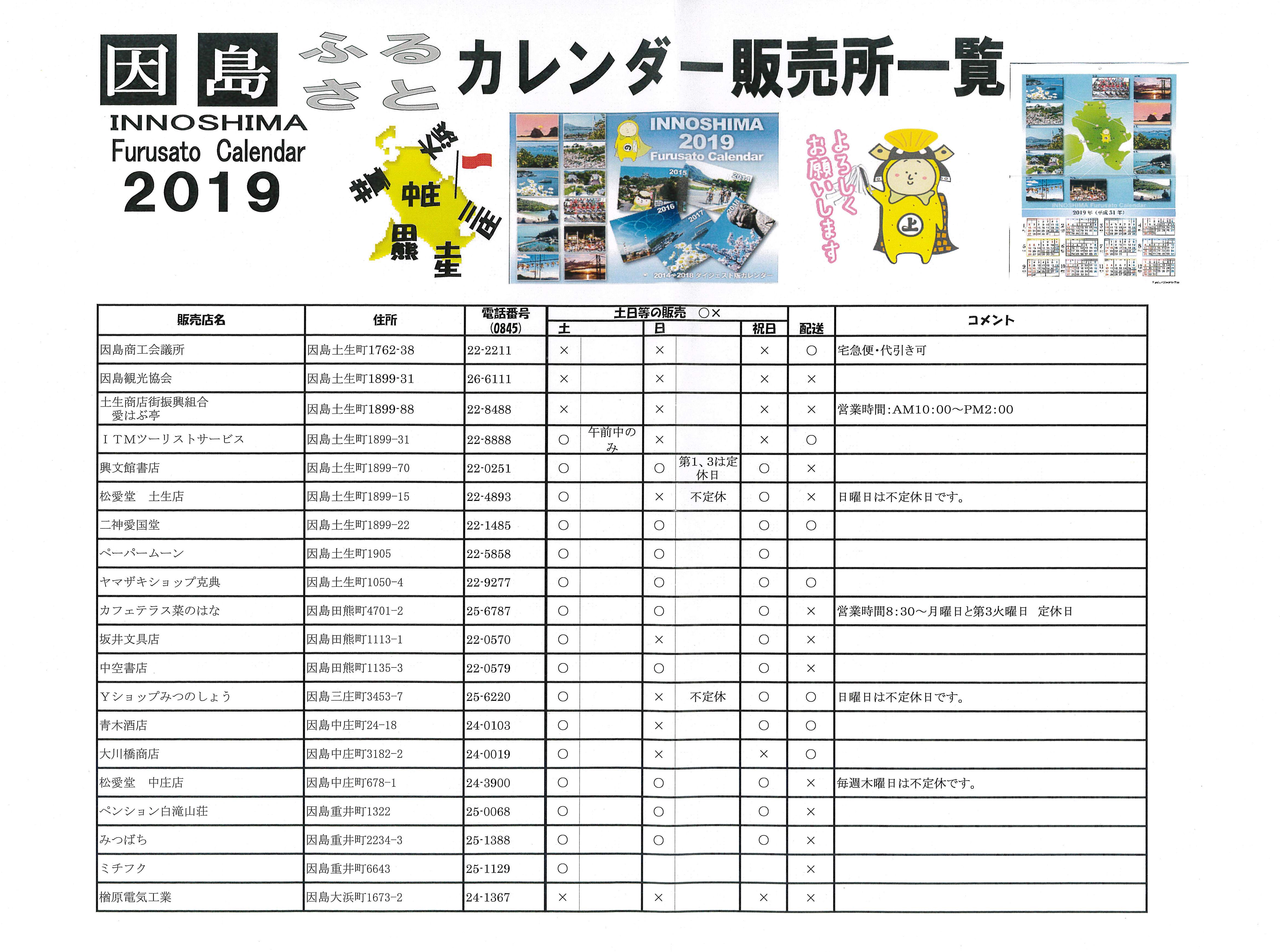 詳しくはこちらをご覧ください⇒http://cci.in-no-shima.jp/pr/calendar/calender2019.html