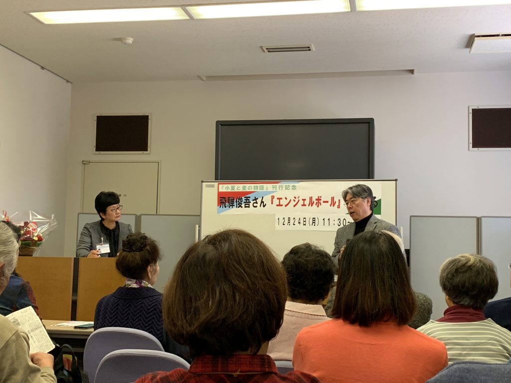 2018年12月25日 / 最終更新日 : 2018年12月25日 因島観光協会 PR 「エンジェルボール」の飛騨俊吾さん、因島図書館に来館! 因島図書館に12月24日(月・祝)、飛騨俊吾さんが来館されました! 「エンジェルボール」について、因島が舞台になった話や出版に至るまでの経緯、本屋大賞受賞の際の話、舞台化の話などを話して下さいました。 「穴おやじ」や新作の「小夏と麦の物語」などの他の作品の話もして下さり、会場に来られた方は興味津々で話を聞いていました。 飛騨俊吾さん、ありがとうございました。