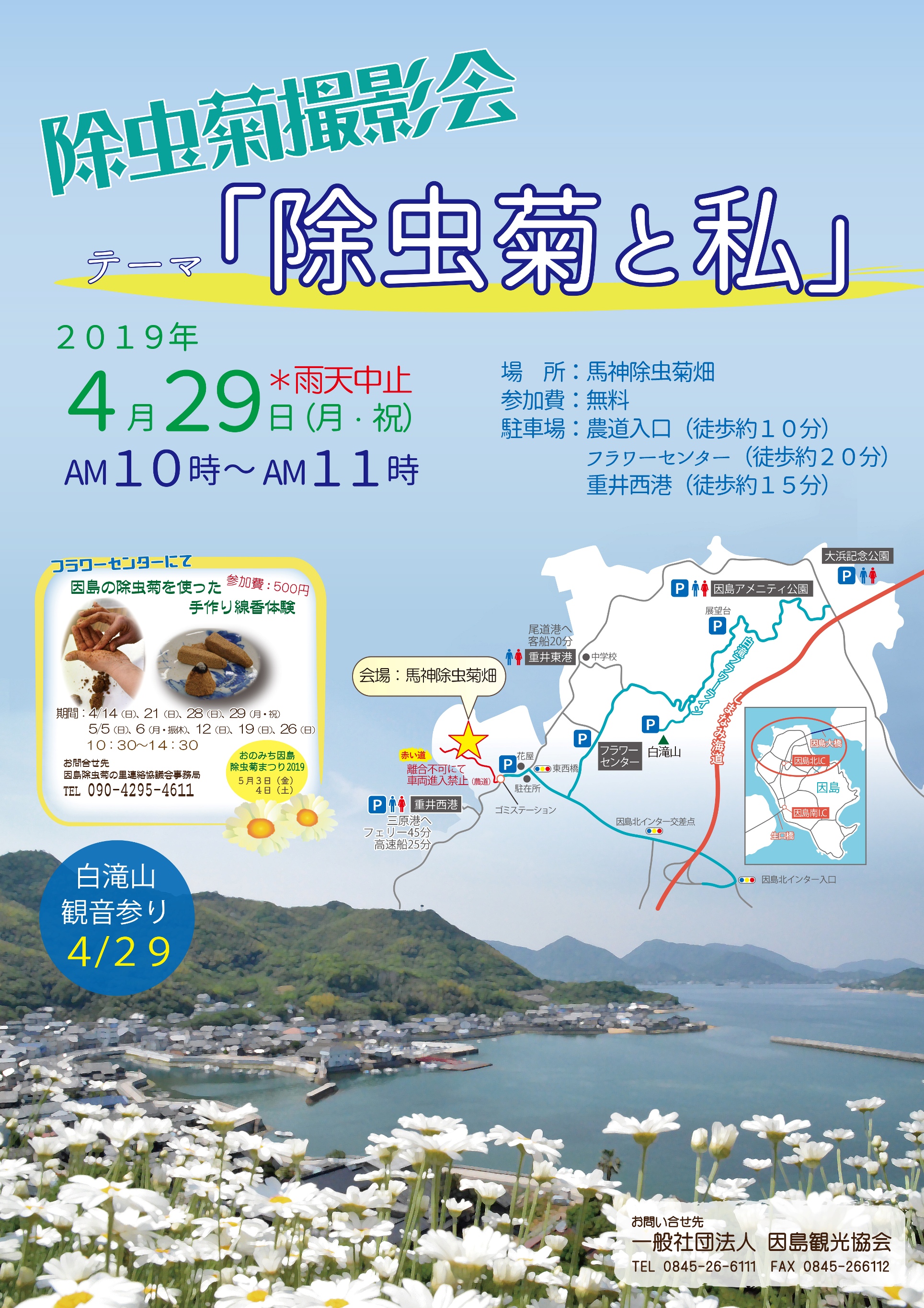 除虫菊撮影会は雨予報のため中止とさせていただきます。ご了承下さい。