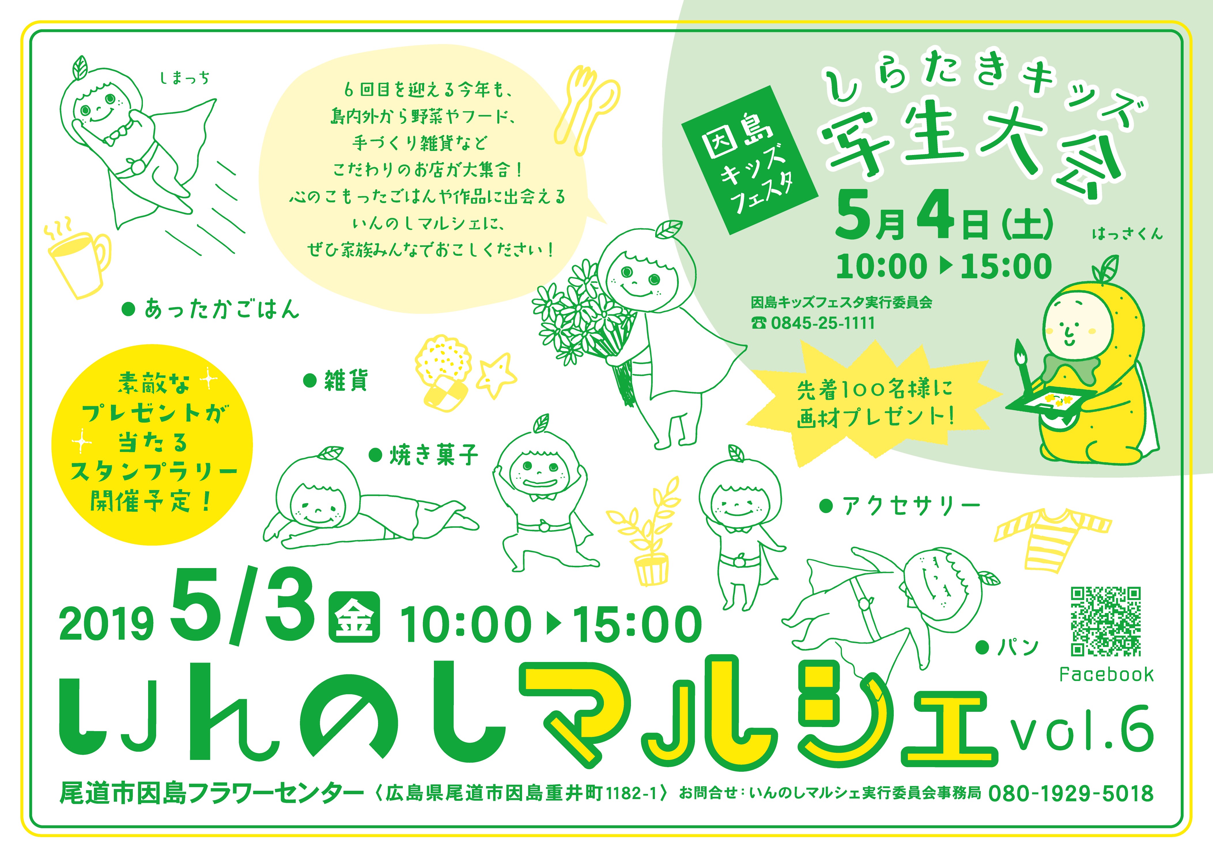 5月3日(金)には「いんのしマルシェ」、5月4日(土)には因島キッズフェスタ「しらたきキッズ写生大会」も開催されます♪