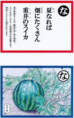 皆さまに、かるた遊びをとおして、ふるさと重井の自然、歴史、産業、文化などを学んでいただき、郷土のよさを再確認し、さらに愛着を深めていただきたいと思います。