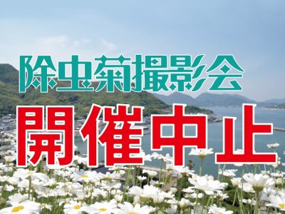 2020年4月9日 / 最終更新日 : 2020年5月21日 因島観光協会 イベント 【中止】馬神除虫菊畑での撮影会について 毎年、馬神除虫菊畑で行われている「除虫菊撮影会」は、新型コロナウイルス感染拡大をうけ、参加者及びモデル・関係者の健康・安全面を第一に考慮した結果中止とさせていただく事となりました。 何卒ご理解を賜りますよう宜しくお願い申し上げます。 楽しみにされていた皆様に重ねて深くお詫び申し上げます。 【お問合せ先】 一般社団法人因島観光協会 TEL 0845-26-6111