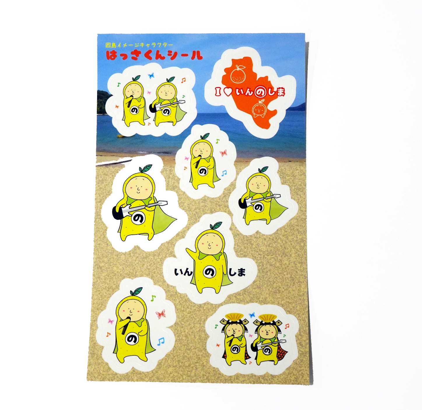 新商品販売記念としまして、オンラインショップ「いんのしまfan fun」にて商品を合計3,500円以上(送料別)購入の方に新はっさくんシールをプレゼント♪