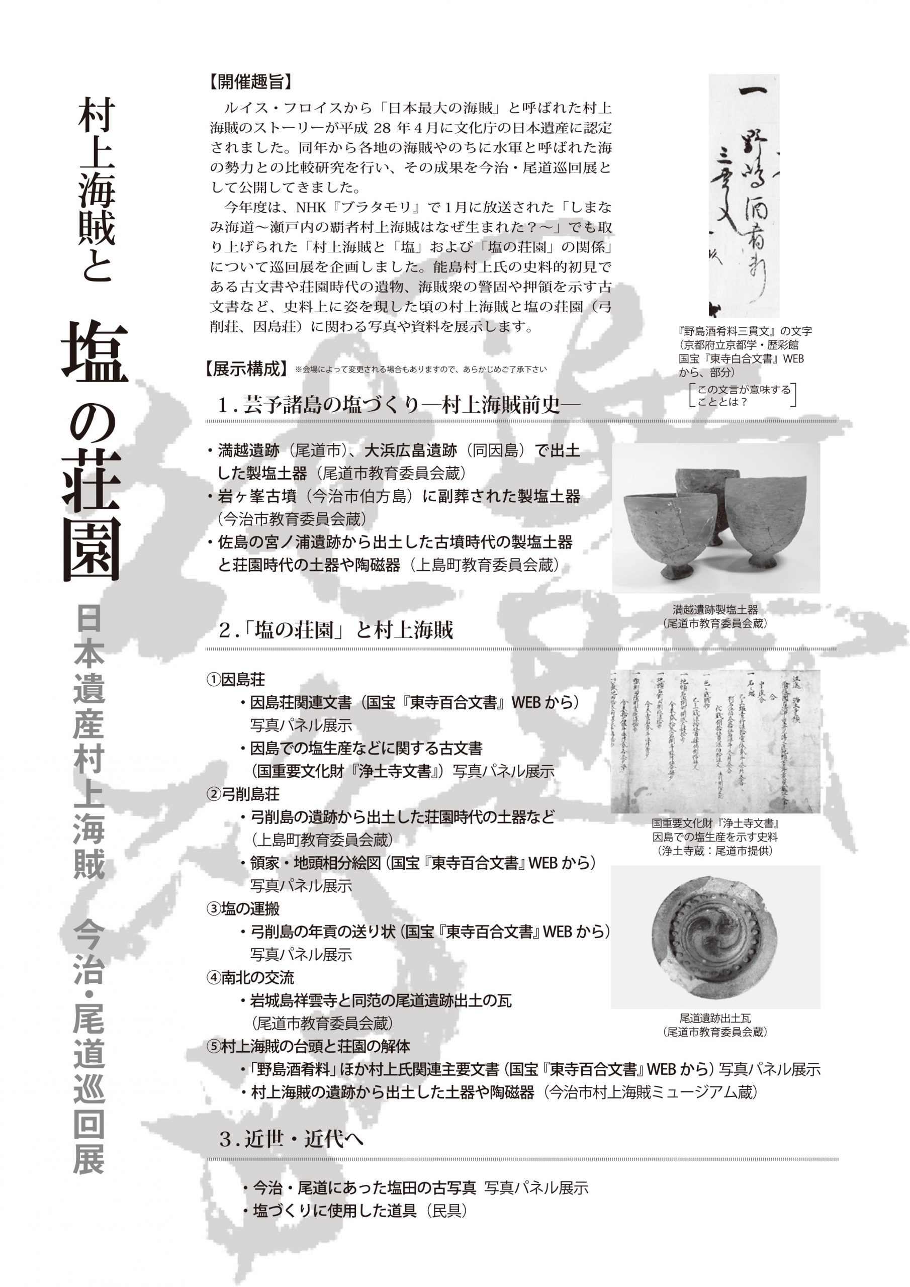 「村上海賊と塩の荘園」巡回展中 京都“東寺”献上『弓削塩』特別販売!