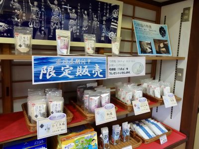 因島水軍城にて、巡回展開催期間中、愛媛県上島町の『弓削の荘』さんの京都“東寺”に献上「弓削塩」を販売しています!