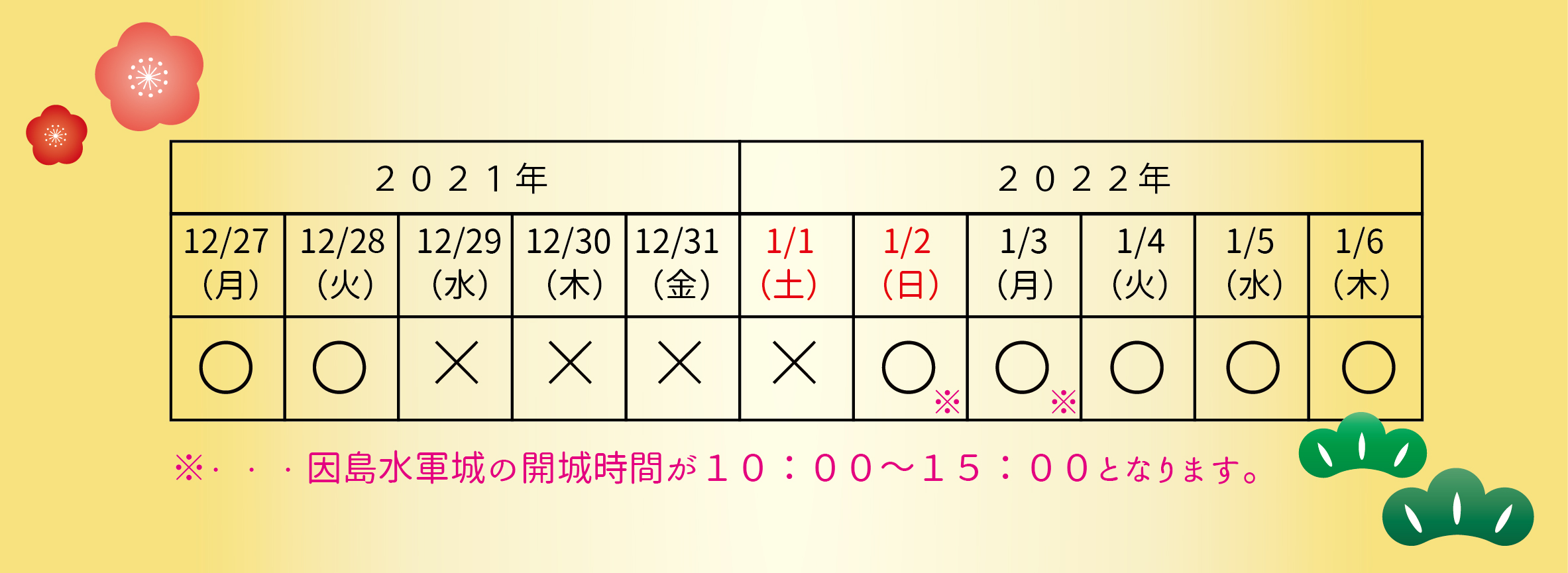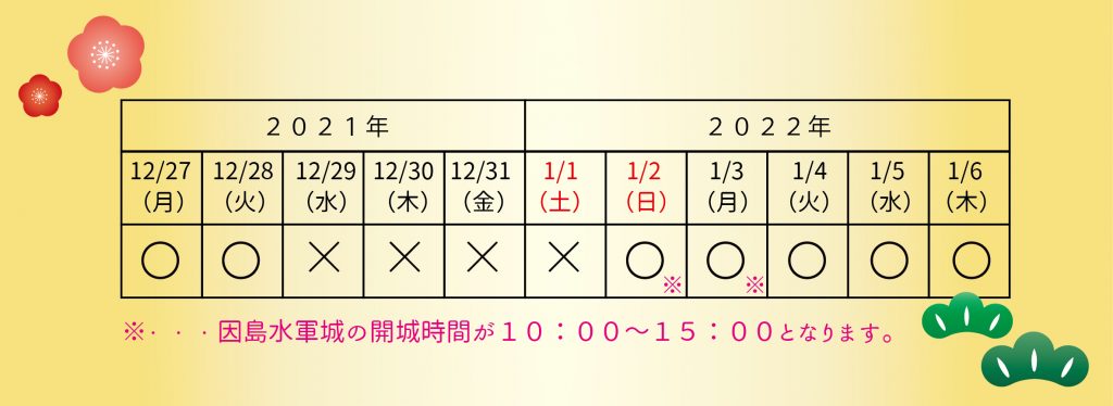 「因島水軍城」では、下記内容でお正月プレゼントを企画しています!