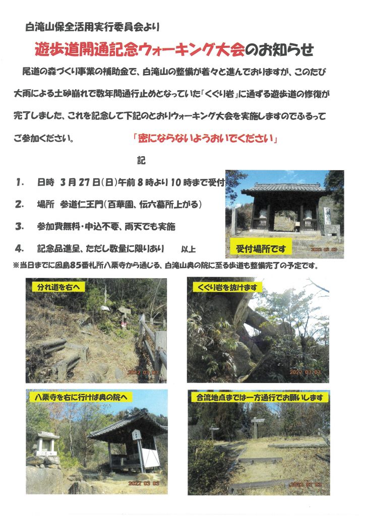 白滝山にて遊歩道開通記念ウォーキング大会が開催されます!