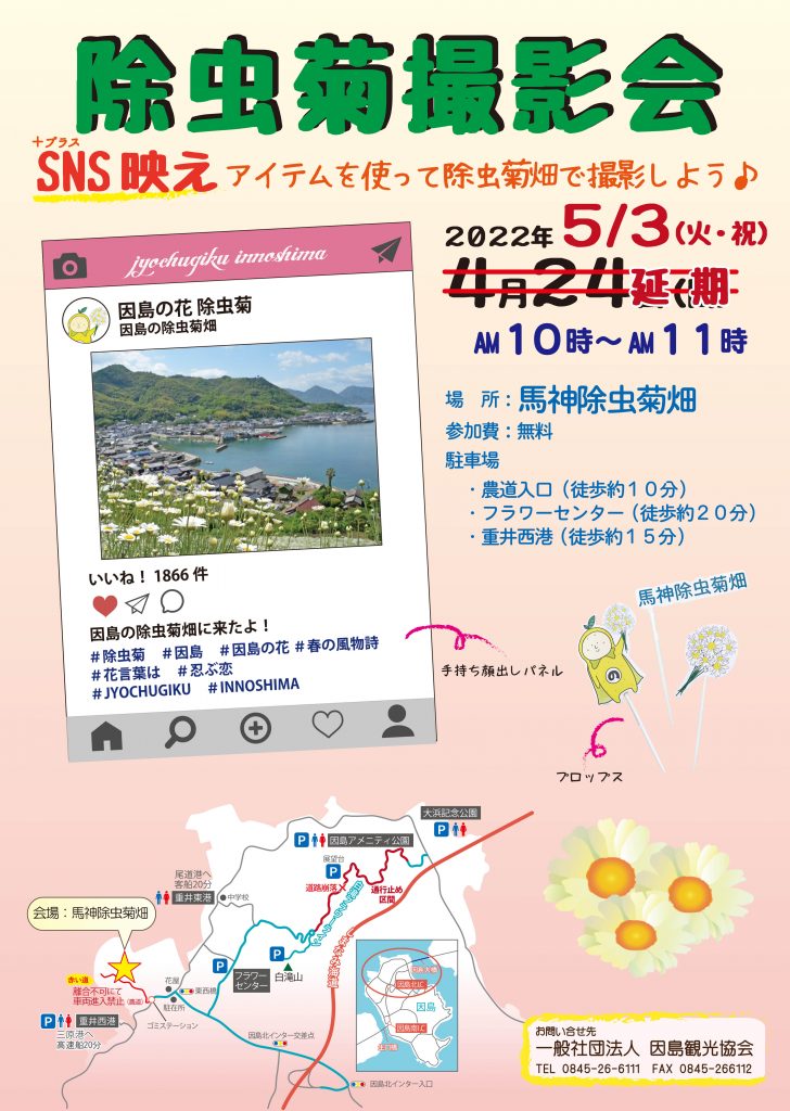 4月24日(日)雨のため、『除虫菊撮影会』を5月3日(火・祝)に延期させて頂きます!