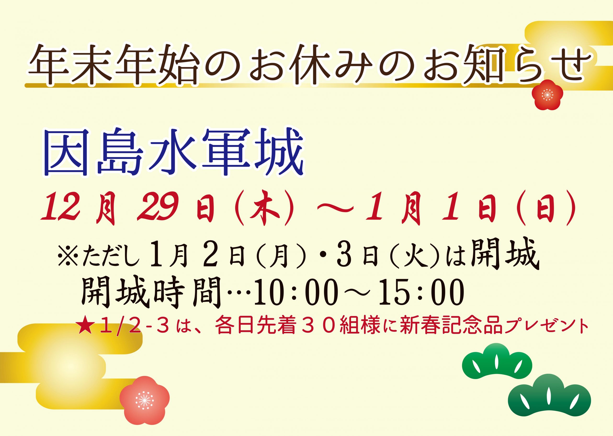 2023年正月2日と3日のご来城の方へ新年の記念品をプレゼント♪