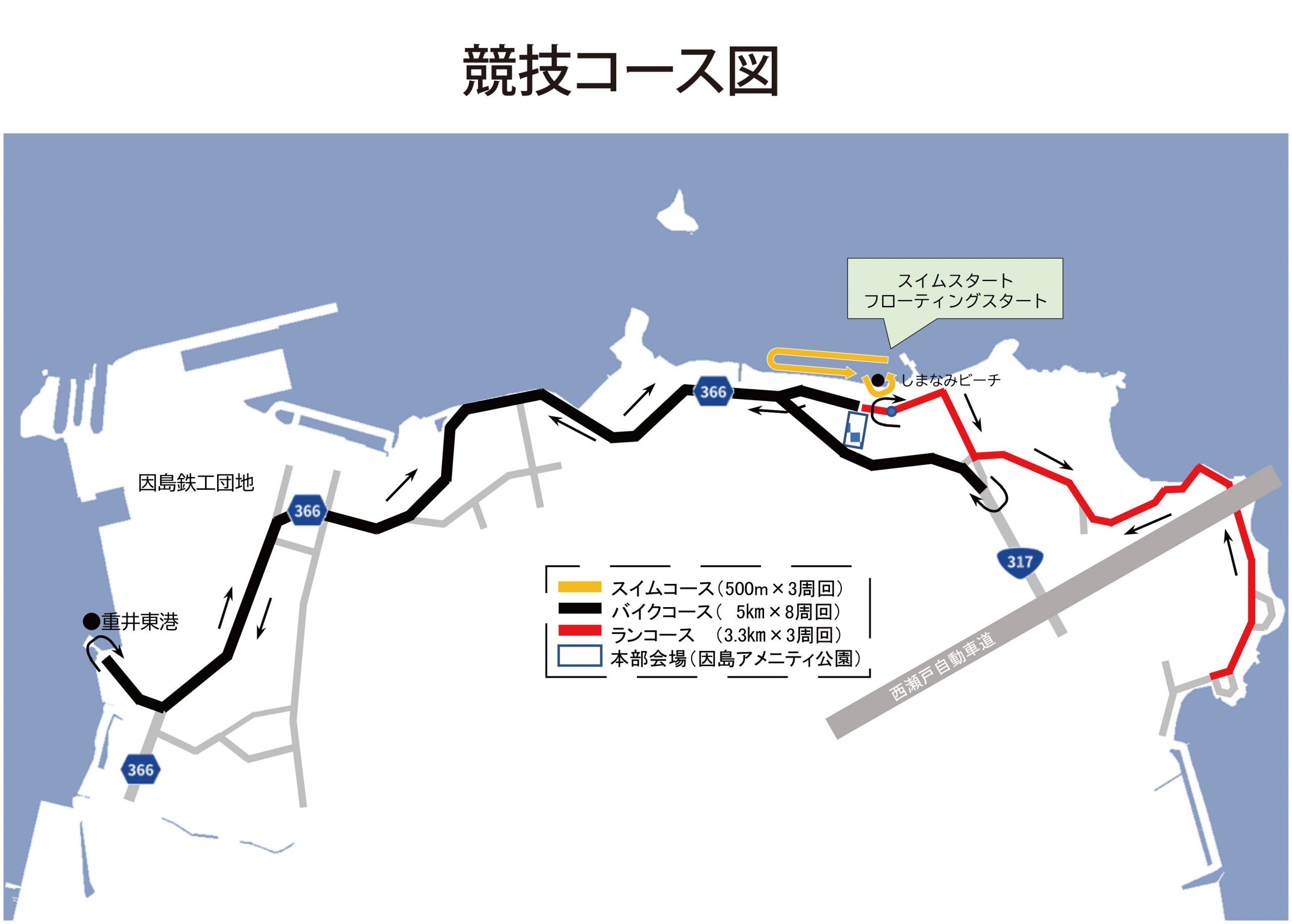 | 場 所 | しまなみビーチ及び因島アメニティ公園特設コース(尾道市因島大浜町) ※会場には駐車場はありませんのでご注意下さい。 |