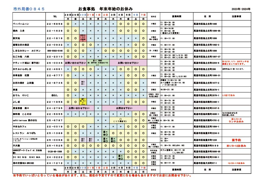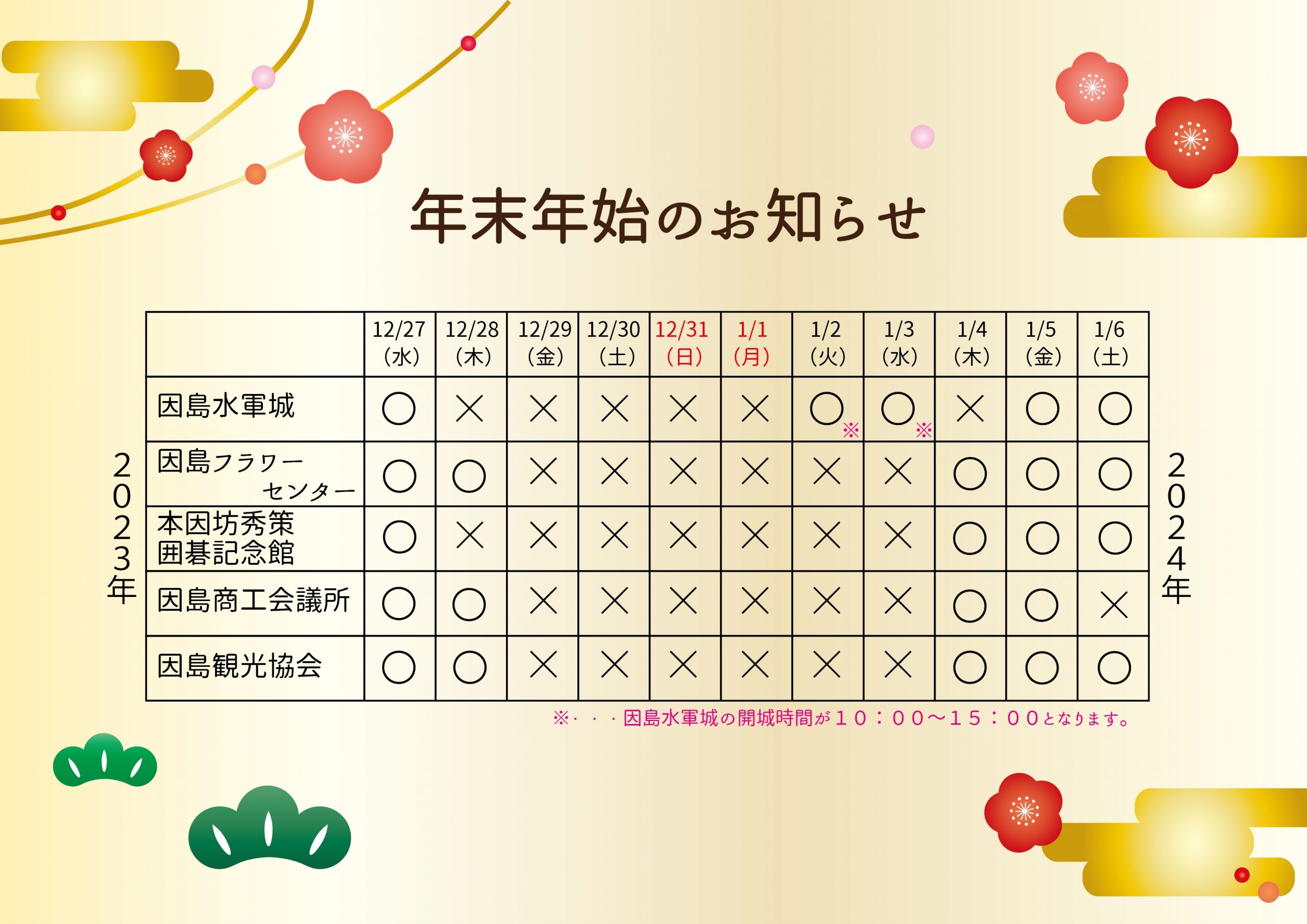 年末年始のお知らせ(2023-2024)
