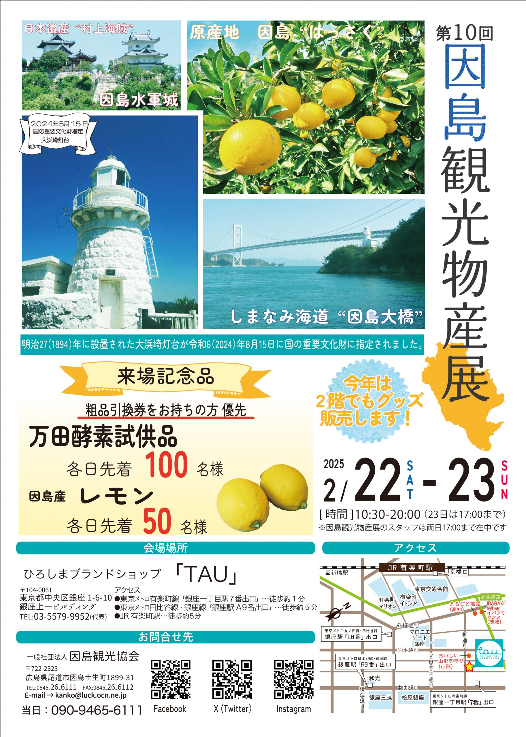 東京銀座の“ひろしまブランドショップTAU”にて「因島観光物産展」を今年も開催致します。