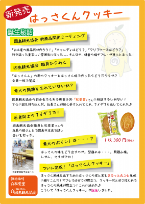 2025年8月10日 / 最終更新日 : 2025年8月10日 因島観光協会 案内 はっさく味の「はっさくんクッキー」新発売! はっさく味の「はっさくんクッキー」販売開始です! 因島産のはっさくを皮から実までまるごと使用♪ 甘さ控えめ、はっさくの風味をお楽しみください! 価 格 1枚 300円(税込) [3枚セット 850円(税込) ※因島観光協会のみ] 製 造 ㈱松愛堂 販売場所 ㈱松愛堂・(一社)因島観光協会 ※3枚セットパッケージは因島観光協会のみです!