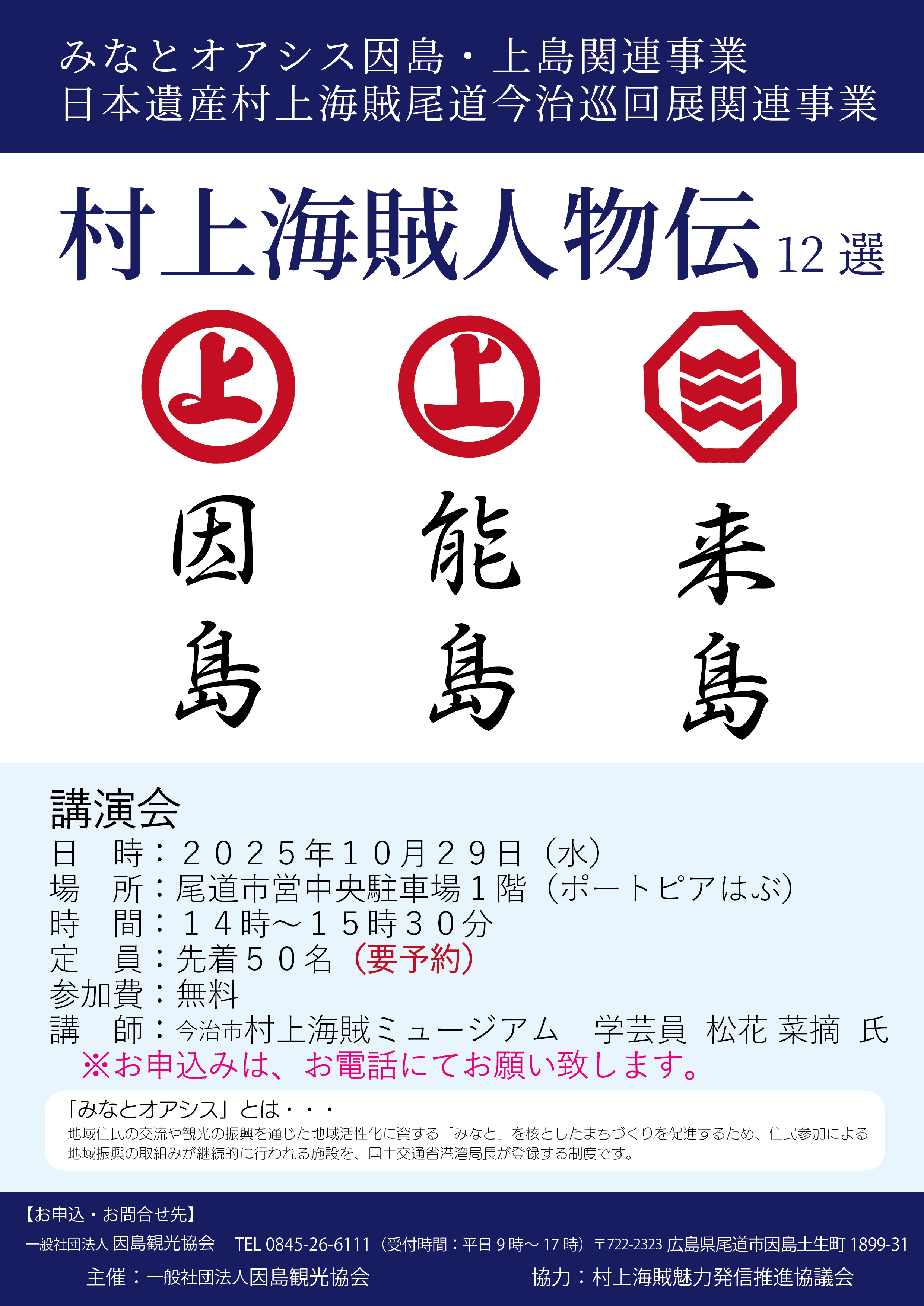 2025年10月29日(水)に「村上海賊人物伝12選」の講演会開催致します!