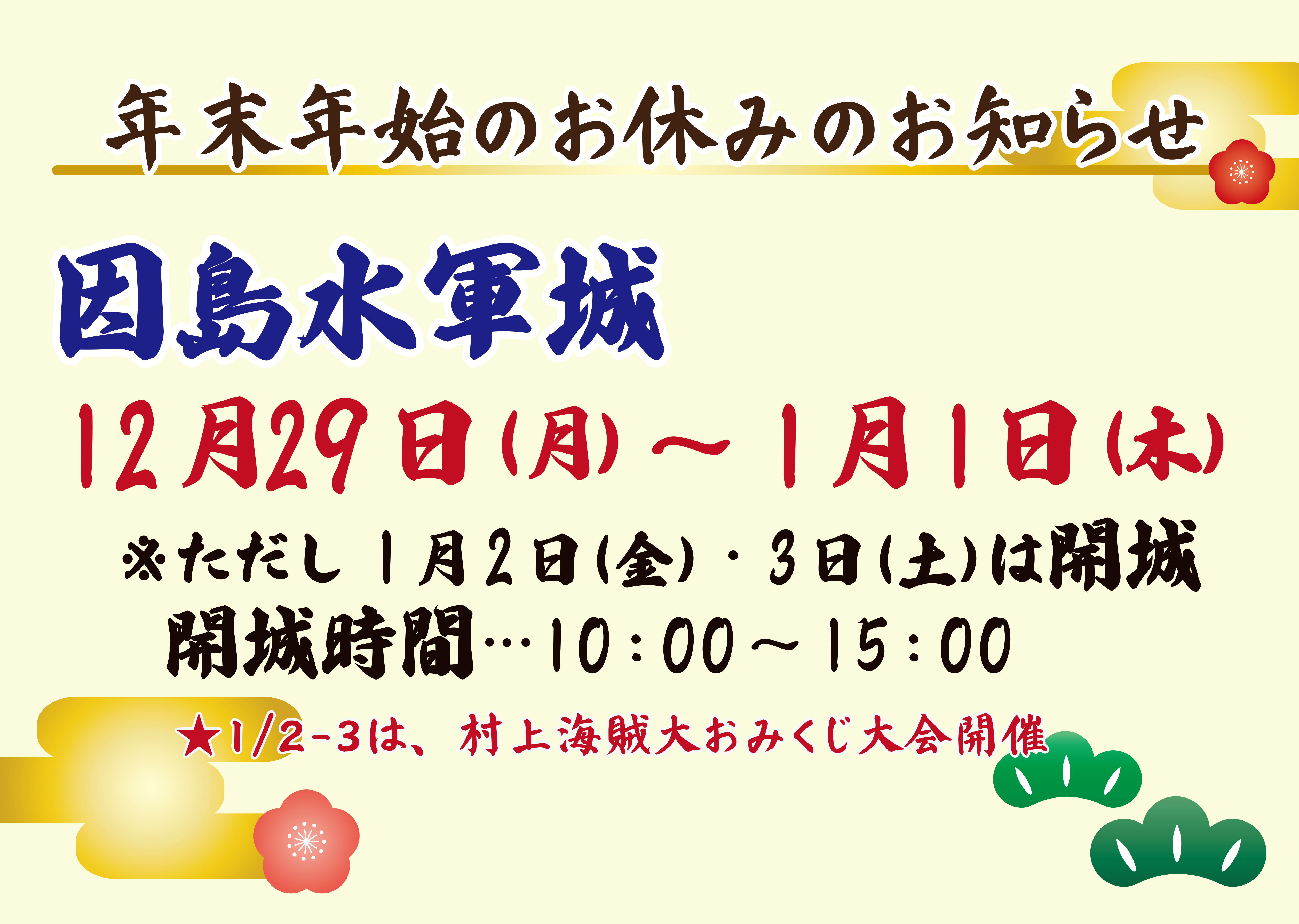 2026年も1月2日・3日に因島水軍城開城致します!
