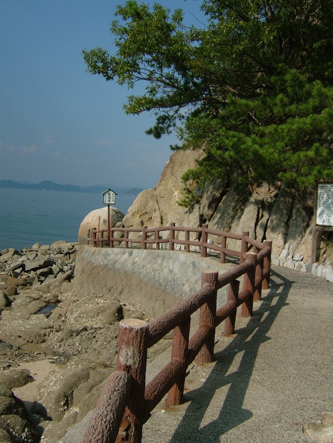 現在、参道の一部でガケ崩れがあり、実際に行けなかったので、幼い頃の思い出話になりますが、夏休みで帰省すると、よく訪れた場所です。琵琶湖育ちの『わたし』には、幼心に海の水がしょっぱいのも、潮の満ち干き自体も、とてもミステリアスでした。いつも、親が引き潮の時間に連れて行ってくれ、自分の背丈よりも高い、大きなお地蔵様を見上げながら一周していました。その当時は、回りの岩場が整備されておらず、幼心に海に落ちそうでとても怖かったのを覚えています。
