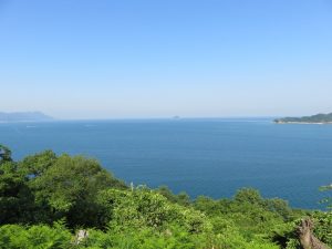 地蔵鼻は海を間近で見れますが、美可崎城跡からは、遠方の雄大な備後灘と瀬戸の島々を眺望出来ます。頂上まで少し険しい山道を5分ほど登ると鞆の浦や仙酔島まで、お天気の良い日には泳いで行けそうなほど近く見えます。昔、関所としての役割をしていたのも納得できる、見通しのよい場所にあります。