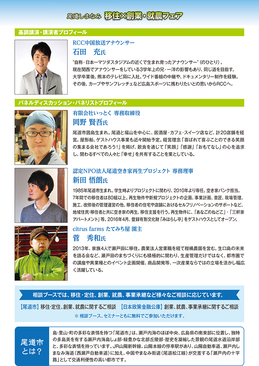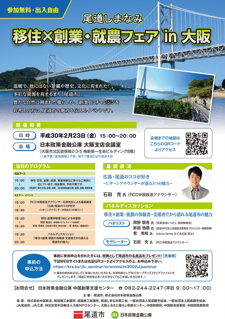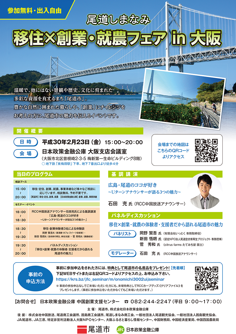 この度、尾道市と日本政策金融公庫が主催で“尾道しまなみ 移住×創業・就農フェアin大阪”が開催されます。
