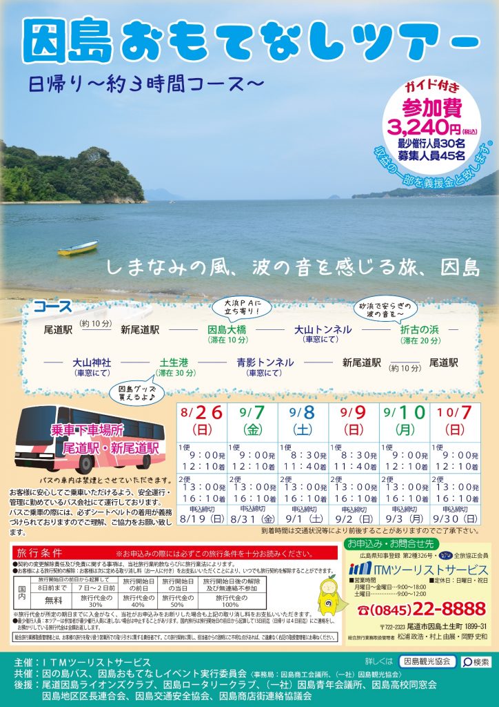 10月7日(日)の因島おもてなしツアーは台風のため中止とさせていただく事となりました。