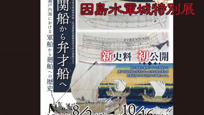 2019年7月31日 / 最終更新日 : 2019年8月26日 因島観光協会 イベント 関船から弁才船へ 因島水軍城特別展(尾道遺跡発掘調査研究所出張展示会) 関船から弁才船へ 瀬戸内海における軍船から廻船への歴史 新資料 初公開 日 時 2019年8月2日(金)~2019年10月16日(水) 場 所 因島水軍城(尾道市因島 […]