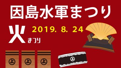 2019年5月16日 / 最終更新日 : 2019年8月24日 因島観光協会 イベント 因島水軍まつり 今年のマフラータオル 島まつり 因島水軍まつり3部構成の第1弾。オープニングと位置付け、因島水軍まつりの成功と、先人に感謝する祭りです。 日 時 2019年6月30日(日) 場 所 しまなみビ […]