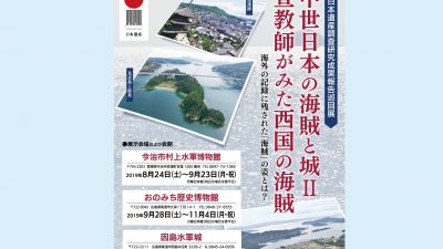 2019年10月17日 / 最終更新日 : 2019年10月28日 因島観光協会 イベント 因島水軍城 巡回展 中世日本の海賊と城Ⅱ 宣教師がみた西国の海賊 展示会場及び会期 今治市村上水軍博物館 2019年8月24日(土)~9月23日(月・祝) おのみち歴史博物館 2019年9月28日(土)~11月4日(月・祝) 因島水軍城 2 […]
