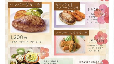 2019年1月17日 / 最終更新日 : 2019年1月18日 因島観光協会 案内 ナティーク城山ランチフェア ナティーク城山 2019早春ランチフェア 日時:2019年1月16日(水)〜3月20日(水) 時間:11:30〜14:00 ○ハンバーグランチ ¥1,200(税込) ○ハンバーグ&カキフライランチ ¥1,500(税込) […]