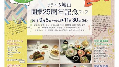 2018年8月30日 / 最終更新日 : 2018年8月30日 因島観光協会 案内 ナティーク城山開業25周年記念フェア 9月5日でナティーク城山は開業25周年を迎えます。 感謝を込めて記念フェアを開催! 特別メニューがご用意されます。 お問合せ先 ナティーク城山 TEL 0845-26-0046 http://nautique.j […]