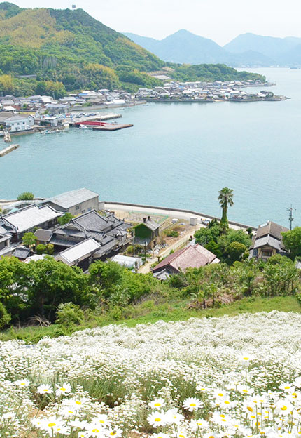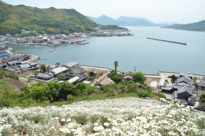 除虫菊は、かつて蚊取り線香など殺虫剤の原料として栽培されていました。因島は、明治から昭和40年ごろまで除虫菊の栽培が盛んで、全国有数の産地でした。毎年5月になると山を真っ白に覆いつくし、初夏の到来を告げていたと言います。現在は一部観光用に栽培され、写真撮影会や除虫菊まつり、線香づくり体験等が行われています。