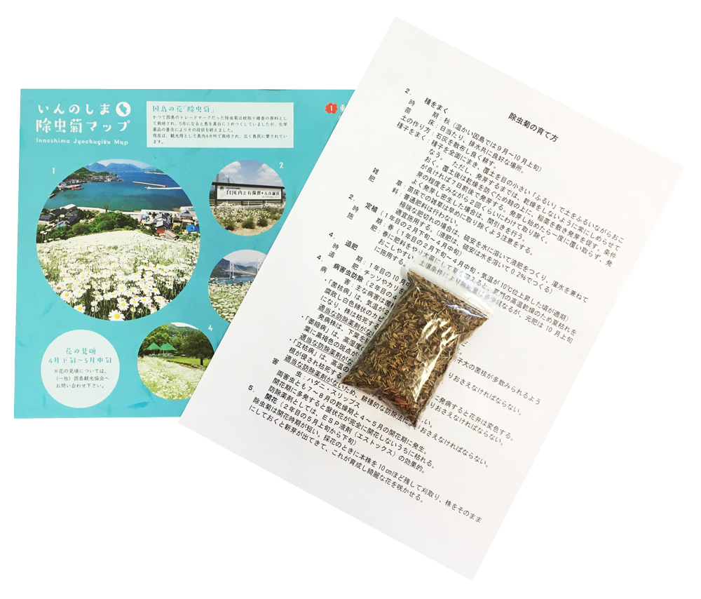 除虫菊の種子【発送終了】 ※因島観光協会からの除虫菊の種子の発送は終了いたしました。 「因島除虫菊の里連絡協議会」で因島除虫菊の種まきキットが期間限定で販売されています! 詳しくはこちら → https://jyochugiku.0845.jp/sowingkit