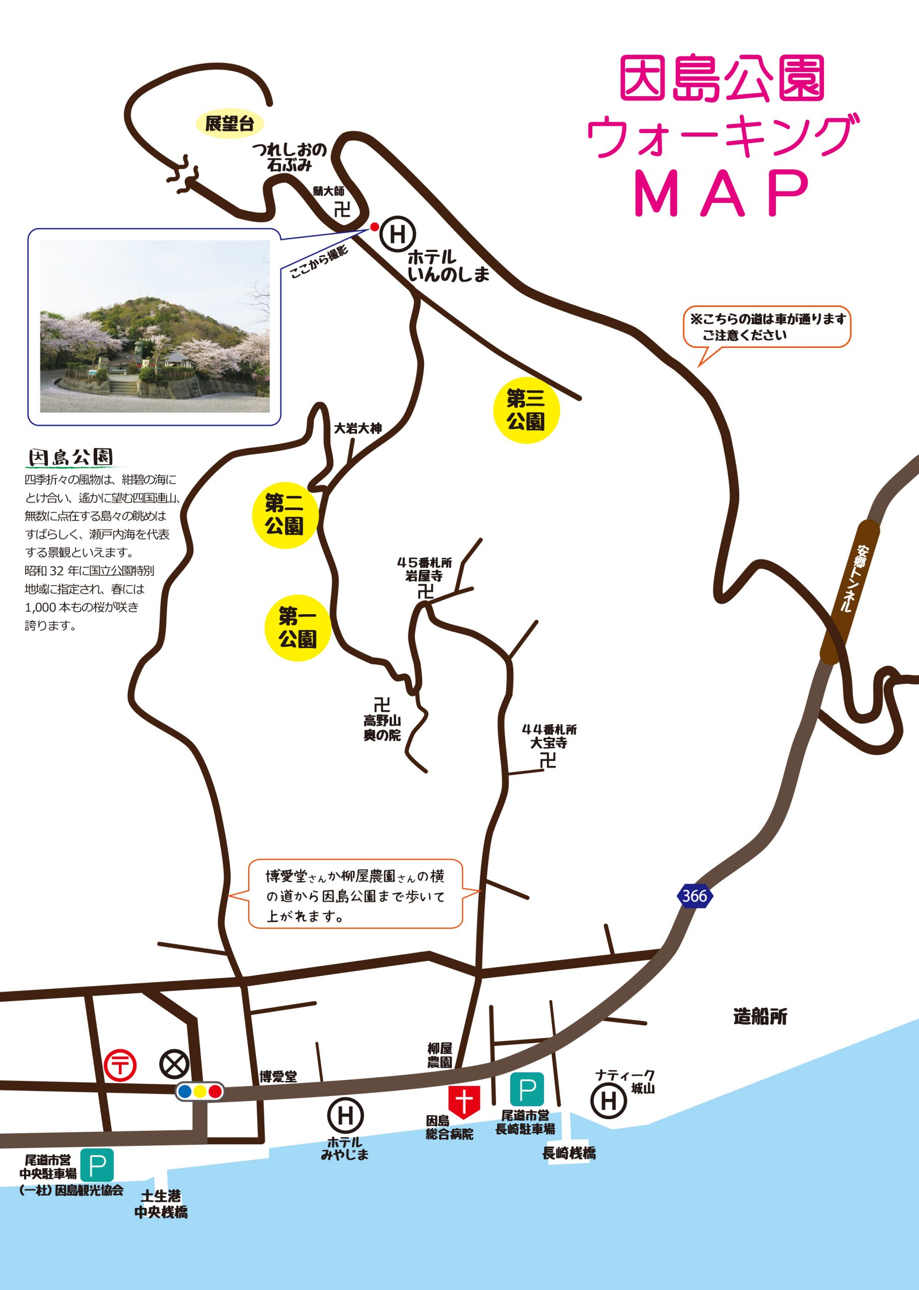 いんのしまさくら祭 因島の桜の名所「因島公園」で開催されるイベントです。 ステージイベントやバザーなどが行われます。 日 時 2023年中止 時 間 場 所 因島公園(ホテルいんのしま前広場) 住 所 広島県尾道市因島土生町288 【お問合せ先】 いんのしまさくら祭実行委員会 (事務局)一般社団法人因島観光協会 TEL 0845-26-6111
