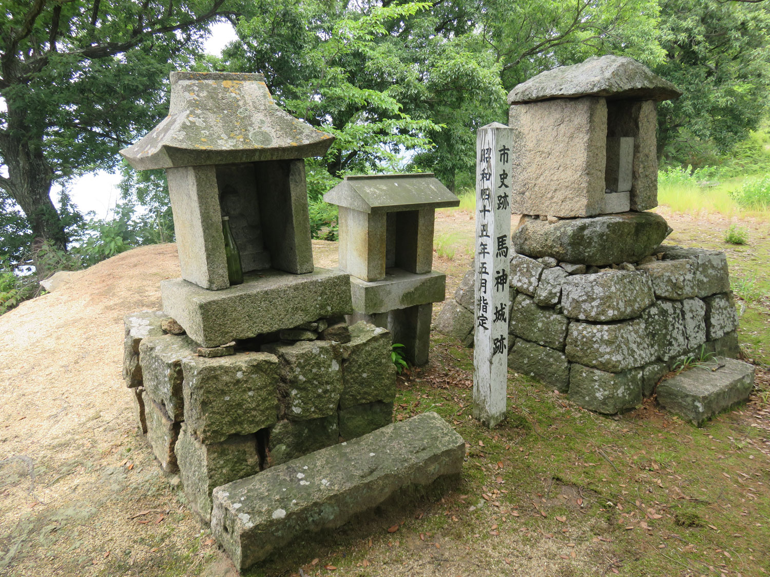 村上吉充は、馬上城に第三家老を置きました。史跡は重井西港を臨む除虫菊畑の上にあります。馬神城への登り口は、除虫菊畑の農道をさらに進むと案内看板があります。