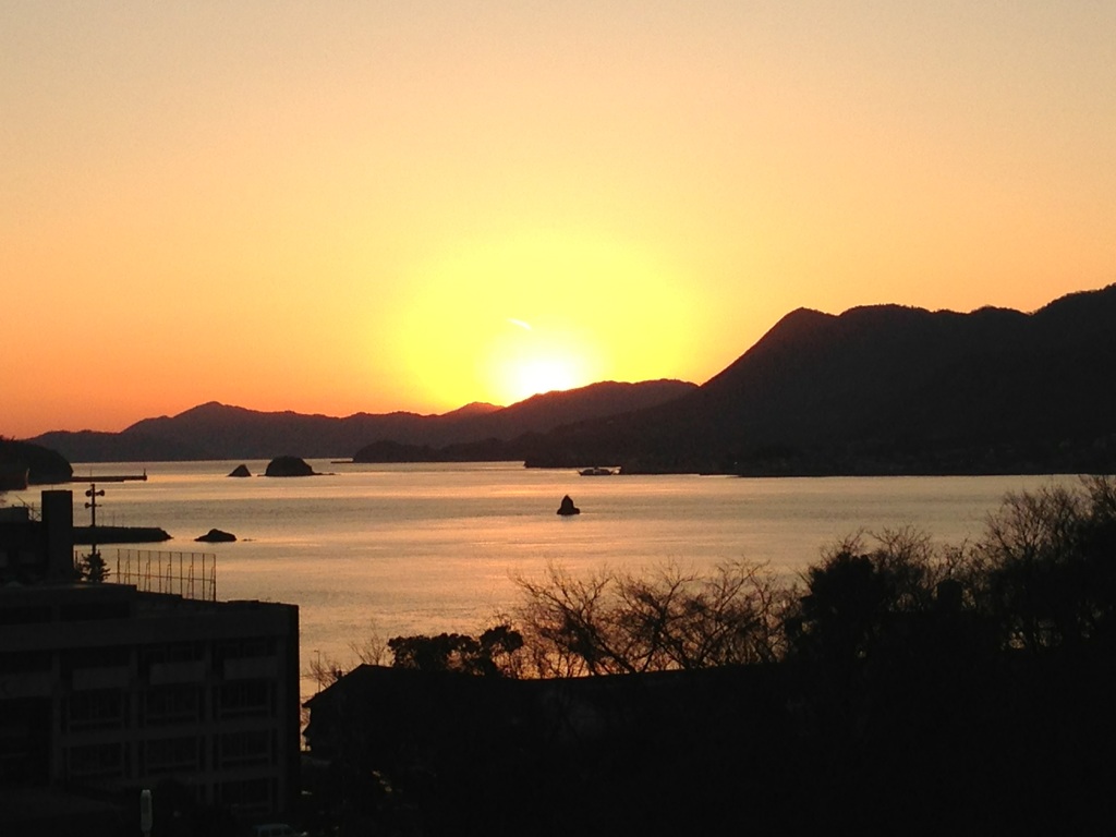 はっさく大福で有名なはっさく屋さんから徒歩5分。目の前に見える布刈瀬戸の潮の流れを見る事ができ、因島大橋の南から上る朝日は、絶景。