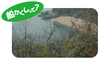 海城は、航行する船を見張る見張り場(郭)と船を隈しておく船隅し、船をつなぎとめておく岩礁ピットなどで構成され、航路がよく見える島の先端などに点在しています。船隈しは、海に突き出した半島状の海城によく見られ、航路から見えないようになっていました。ここから船を出港させ、緊急時に備えていました。現在でも因島や向島にこうした船隠し跡が残っています。