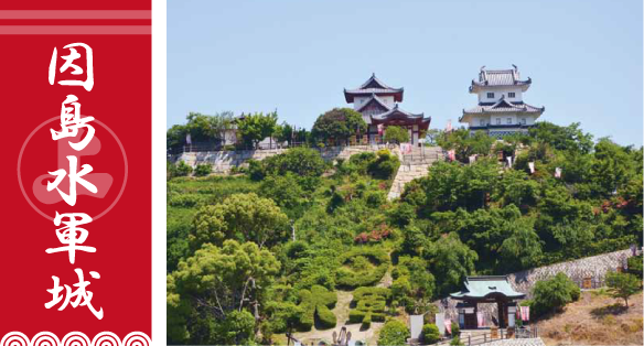 因島水軍城は城郭型の資料館です。村上海賊の至宝や遺跡からの出土品をはじめとした数多くの関連資料を展示し、ご紹介しています。