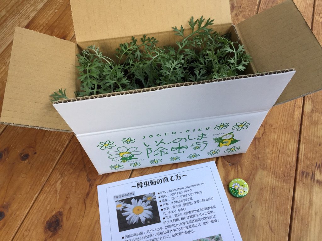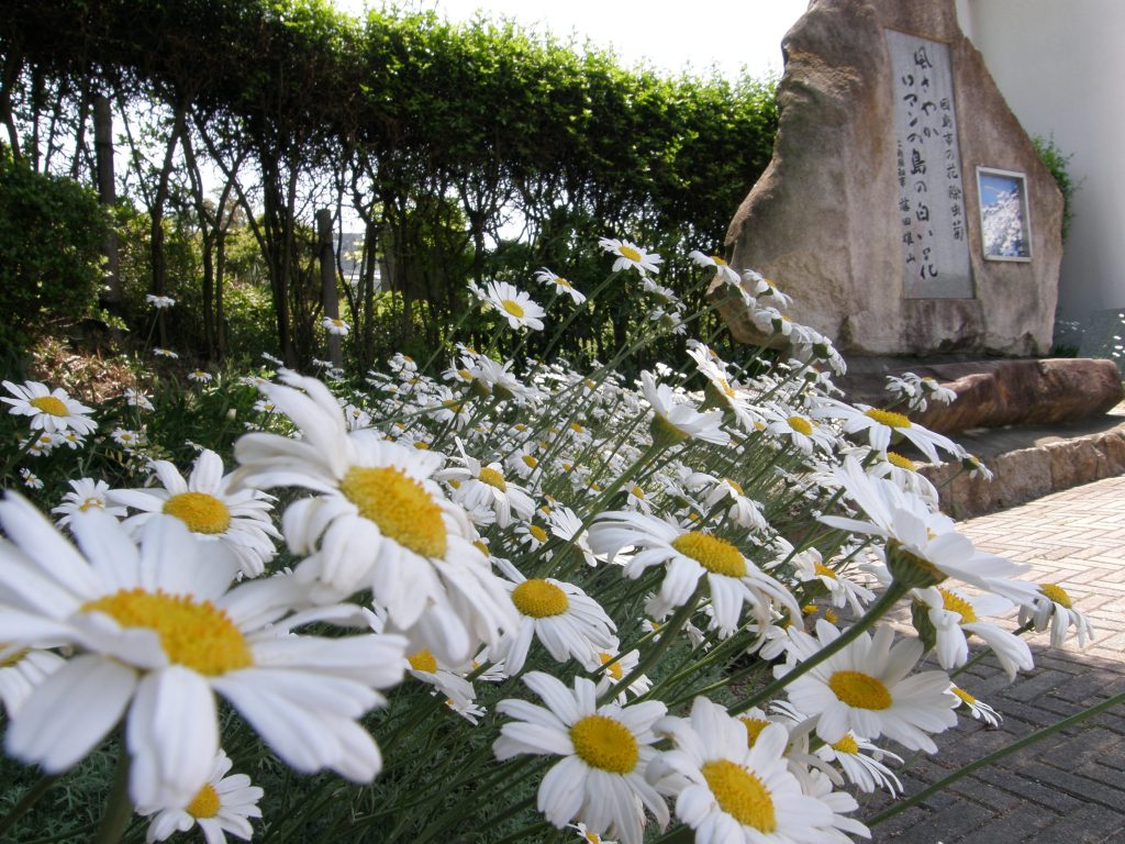 キク科に属する多年草で、60㎝程度に伸びこの先に白い花弁が一列に並んだ花が咲く除虫菊は1983年(昭和58年)に旧因島市の花に制定されました。