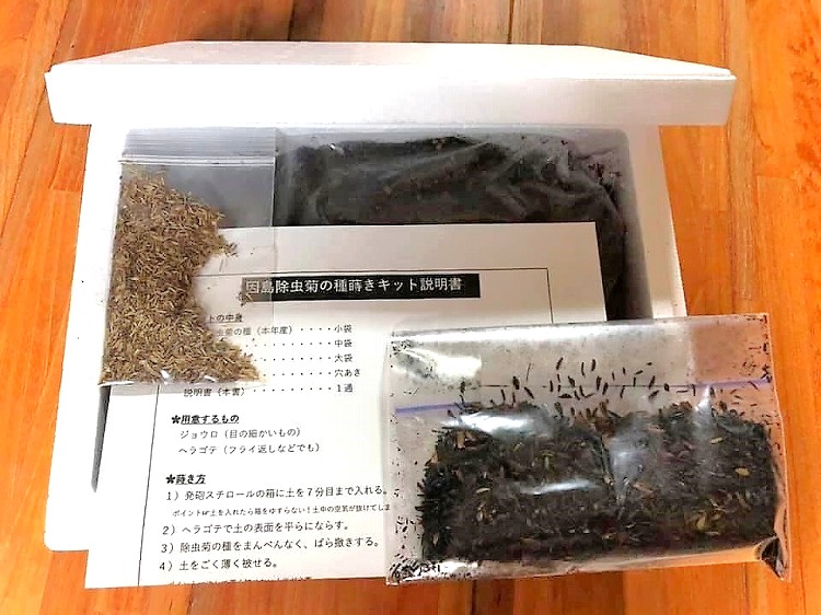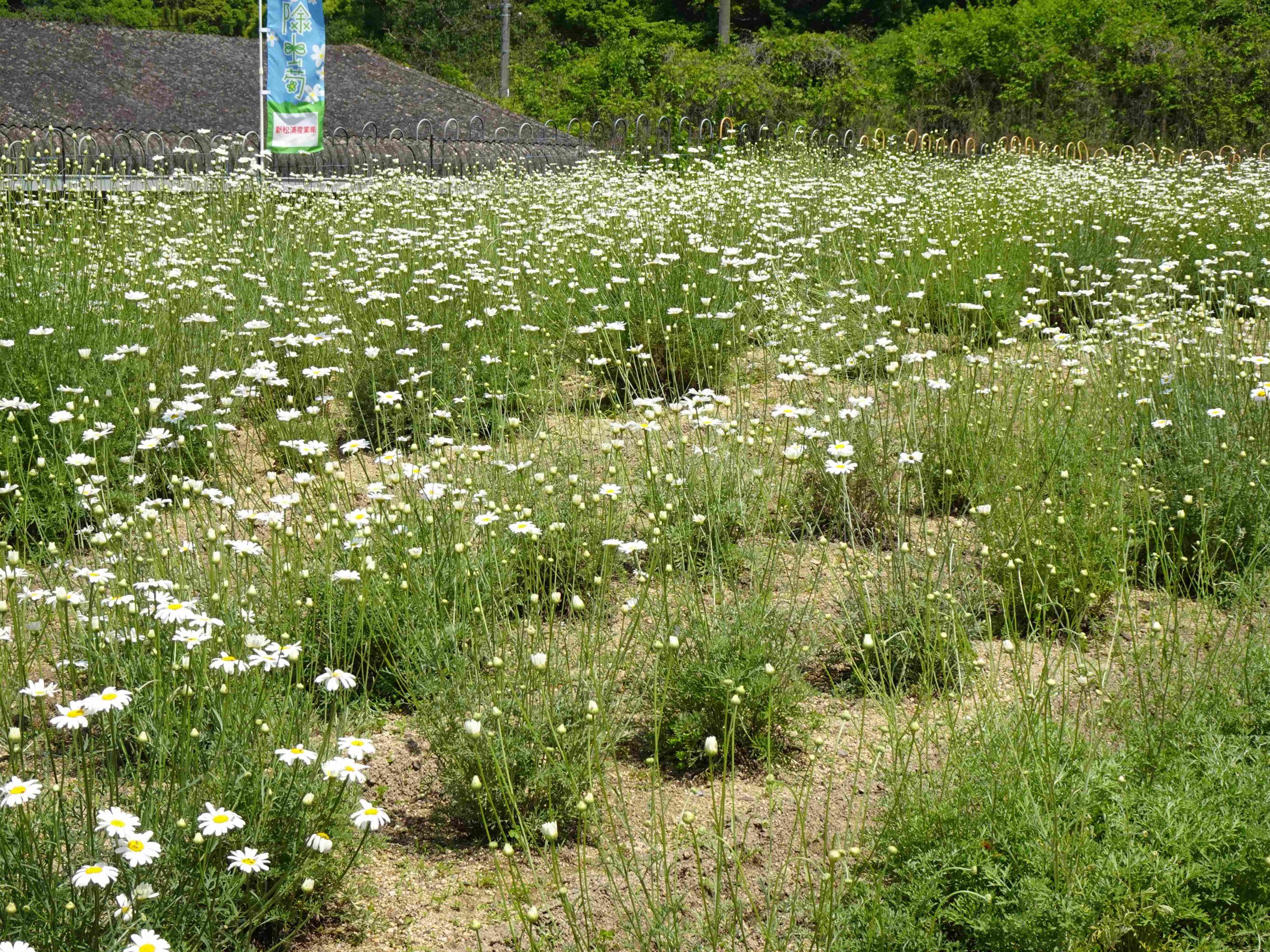 因島フラワーセンター外周花壇と中で除虫菊が栽培されています。
